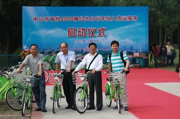 10月9日,中山市公共自行車舉行了啟動(dòng)儀式。中山公共自行車服務(wù)系統(tǒng)首期在主城區(qū)布180個(gè)服務(wù)點(diǎn),已有50個(gè)建好,首批5個(gè)實(shí)名登記點(diǎn)啟用,未來將增至30個(gè),當(dāng)日累計(jì)第一小時(shí)免費(fèi),超1小時(shí)按每小時(shí)1元計(jì)費(fèi),一天最高收費(fèi)23元。
