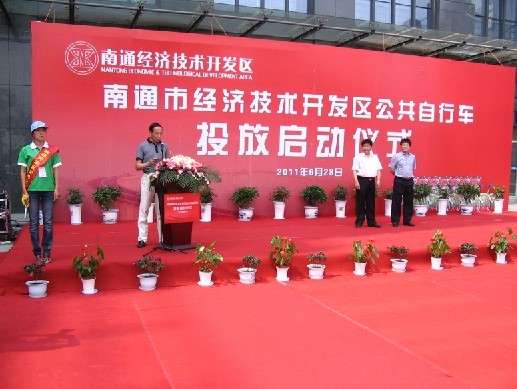 2011年6月28日南通經(jīng)濟技術(shù)開發(fā)區(qū)公共自行車正式啟動,啟動儀式中管委會領(lǐng)導介紹了公共自行車建設(shè)情況,陳書記宣布公共自行車系統(tǒng)正式啟動,并有自行車騎行方隊巡游開發(fā)區(qū).