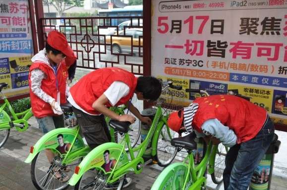 為了提倡愛(ài)護(hù)公共自行車(chē),5月19日志愿者自發(fā)在石路站點(diǎn)清潔公共自行車(chē),雖然當(dāng)天下著雨,天氣有些冷,但志愿者依然不辭辛苦的擦拭公共自行車(chē)。感謝每位志愿者的辛勤勞動(dòng),感謝他們對(duì)公共自行車(chē)的關(guān)心和支持。我們將更好的服務(wù)來(lái)回報(bào)每位市民。