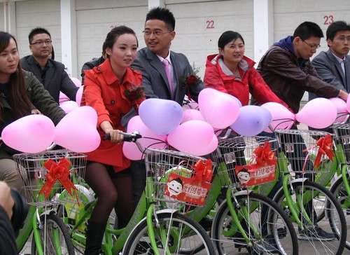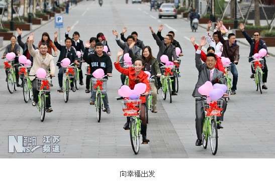 2011年10月26日,一場別開生面的自行車騎行婚禮在南通開發(fā)區(qū)上演?;槎Y主角——新郎朱吉鵬和他的新娘瞿曉波雙雙騎上自行車,在親朋好友的陪伴下沿著開發(fā)區(qū)主要道路騎行一周,低碳、綠色的自行車騎行婚禮吸引了眾多市民的眼球。