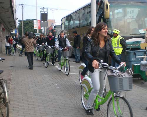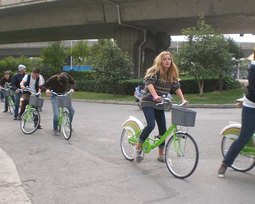 公共自行車在法國已運行多年,雖然法國游客對公共自行車早已熟悉,但他們對蘇州公共自行車依然非常感興趣,當(dāng)他們知道旅行中有騎公共自行車游玩蘇州古城區(qū)這一活動時,他們非常熱切和開心的騎上公共自行車,在導(dǎo)游的帶領(lǐng)下,游玩蘇州古城區(qū),雖然整個騎行時間只有1個多小時,但相信這種特殊的旅游方式會給他們留下深刻的印象,也讓蘇州這座千年古城更添活力。