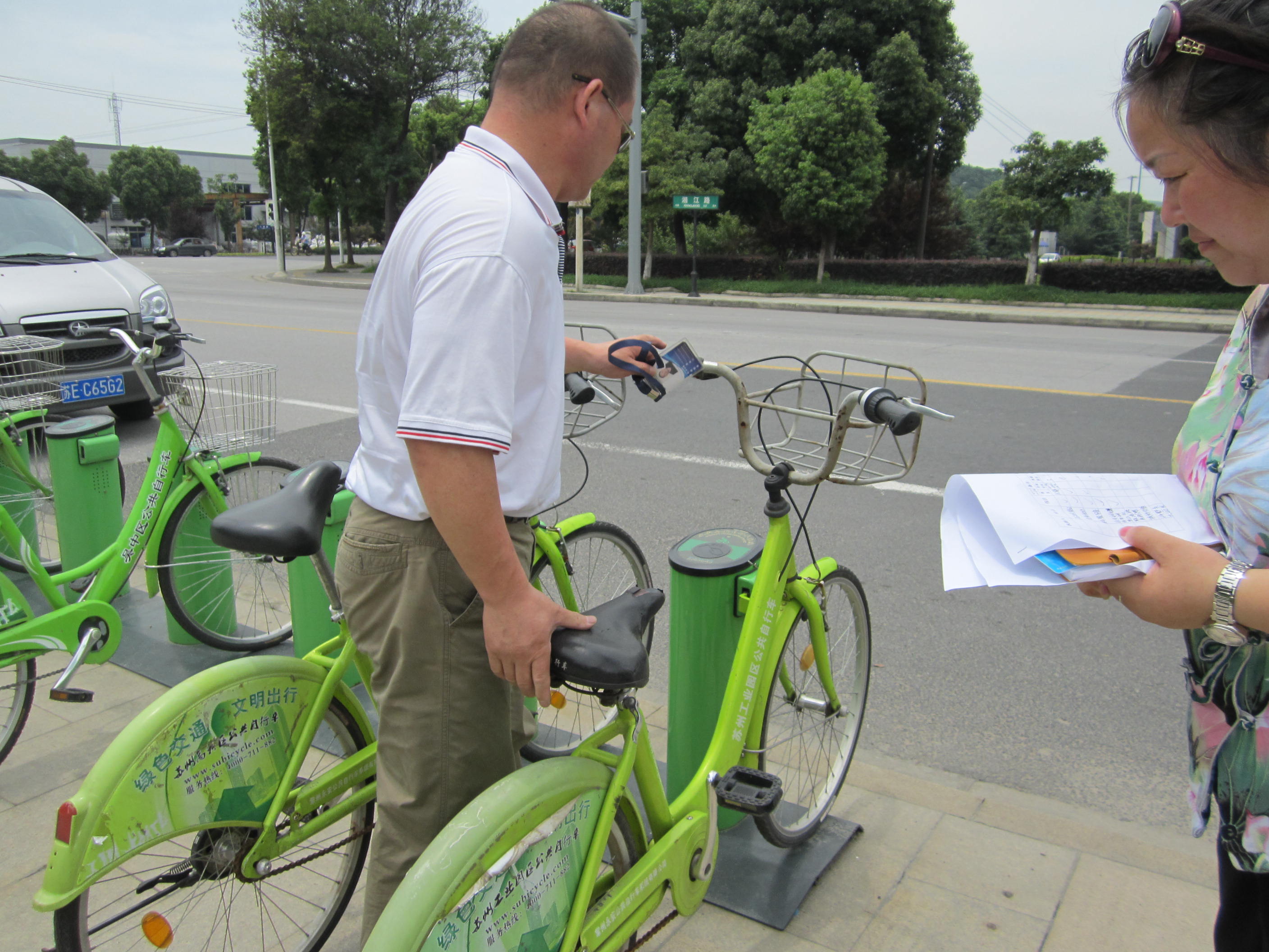 為了更好的滿足市民綠色出行的需要,提高我們的服務質(zhì)量。公共自行車管理中心成立了巡查組。對公共自行車站點現(xiàn)場進行巡查。從7月份開始,巡查組已進行4次巡查。他們頂著炎炎夏日。對所巡查的站點都認真地檢查,內(nèi)容包括:站點保潔、備車與壞車的存放、數(shù)據(jù)核實、設施風貌、接電是否有隱患、基礎是否牢固、設備狀況、辦卡點、倉庫、巡檢人員的上崗標準等等。