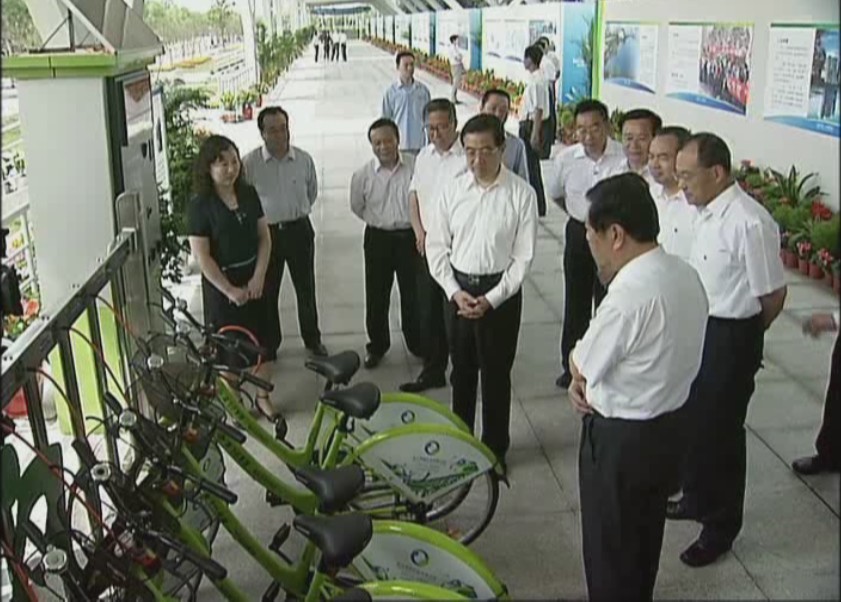 記得二零一一年六月份,我們的國(guó)家主席胡錦濤同志在武漢視察兩型經(jīng)濟(jì)建設(shè)成果展時(shí),他還親自刷卡“借”綠色環(huán)保自行車,體驗(yàn)“武漢特色”綠色出行。無(wú)獨(dú)有偶,事隔近兩年后,現(xiàn)任的國(guó)家主席習(xí)近平同志代表黨中央再次參觀武漢兩型經(jīng)濟(jì)成果展。觀看并贊許了武漢公共自行車智能系統(tǒng)租還演示。兩任國(guó)家主席的兩次視察標(biāo)志著我們國(guó)家和政府對(duì)綠色出行的高度重視,對(duì)現(xiàn)代城市兩型經(jīng)濟(jì)建設(shè)的高度重視!