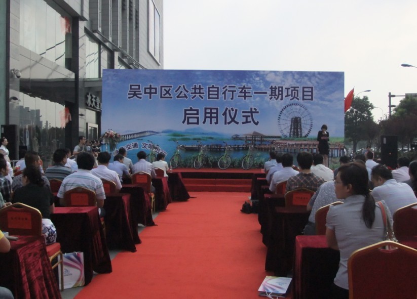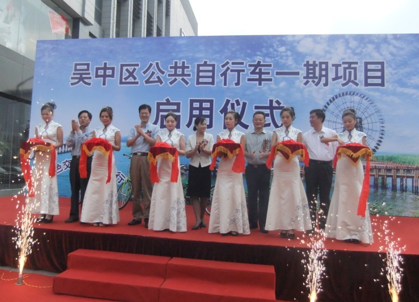 9月28日上午,吳中區(qū)公共自行車一期項目啟用儀式在新蘇國際南廣場舉行。吳中區(qū)政府金潔區(qū)長、區(qū)人大常委會王建華副主任、區(qū)政府榮德明副區(qū)長、區(qū)政協(xié)趙建明副主席等領導出席啟用儀式并剪彩。啟用儀式上,區(qū)領導還親身體驗了公共自行車?! 侵袇^(qū)公共自行車一期項目設置42個網(wǎng)點,投入公共自行車1000輛。其中吳中區(qū)中心城區(qū)設置自行車站點22個、開發(fā)區(qū)11個,木瀆鎮(zhèn)9個,主要分布在居民小區(qū)、主干道以及商場超市附近。市民可以就近前往吳中區(qū)城管局、新蘇國際商城(臨時辦卡點)、陽光水榭商業(yè)街以及木瀆鎮(zhèn)四個辦卡點辦理公共自行車借還卡,吳中區(qū)公共自行車系統(tǒng)與市區(qū)、園區(qū)、高新區(qū)公共自行車系統(tǒng)無縫對接,實現(xiàn)車輛跨區(qū)通借通還、借車卡跨區(qū)通用,已辦理市區(qū)、園區(qū)、高新區(qū)借車卡的市民無需再辦理吳中區(qū)借車卡。 吳中區(qū)還將適時建設第二期公共自行車站點,主要以三個板塊建設為主,一是吳中開發(fā)區(qū)越溪板塊(含一期工程完善),二是木瀆鎮(zhèn)板塊(加密),三是5a級景區(qū)板塊(創(chuàng)建),預計建設100多個點位,投入3000多輛自行車。