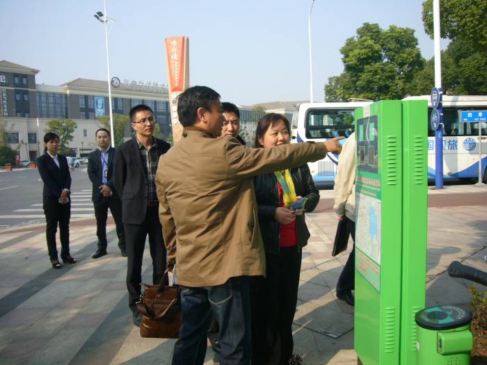 2013年11月7日蘇州公共自行車在園區(qū)創(chuàng)標辦的主導下迎來了旅游標準化試點企業(yè)的省級驗收。下午13點20分,在李公堤東端的金雞湖游客中心大廳內(nèi),由金雞湖景區(qū)客服人員和公共自行車工作人員配合演示了景區(qū)公共自行車卡的租借流程。辦卡完畢后,在工作人員引領(lǐng)下檢查組前往公共自行車站點“李公堤東端”,現(xiàn)場演示了借還公共自行車的流程、卡的自助查詢和周邊站點基本信息查詢等功能。驗收組的領(lǐng)導懷著濃厚的興趣對公共自行車功能、使用狀況及與景區(qū)工作對接等方面進行了詢問。公共自行車管理中心領(lǐng)導對目前蘇州工業(yè)園區(qū)公共自行車的運營情況、日常管理等工作作了簡要的匯報。
